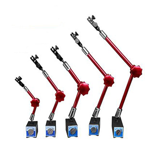 磁性表座也稱萬向表座。是機器制造業用途較多,廣泛適用于各類機床,也是必不可少的檢測工具之一,同時還應用于各種科研機構及高等院校的科學研究中測量精度。它里面是一個圓柱體,在其中間放置一條條形的永磁鐵,外面底座位置是一塊軟磁材料,使用時,通過轉動開關,來轉動里面的磁鐵。當磁鐵的兩極呈上下方向時,軟磁材料的底座就被磁化,這個方向上具有強磁性,所以能夠吸住鋼鐵表面。而當磁鐵的兩極處于水平方向時,兩極的中間正對軟磁材料底座時,底座不會被磁化,所以底座上磁力小,就可以很輕易地工作面上取下來。